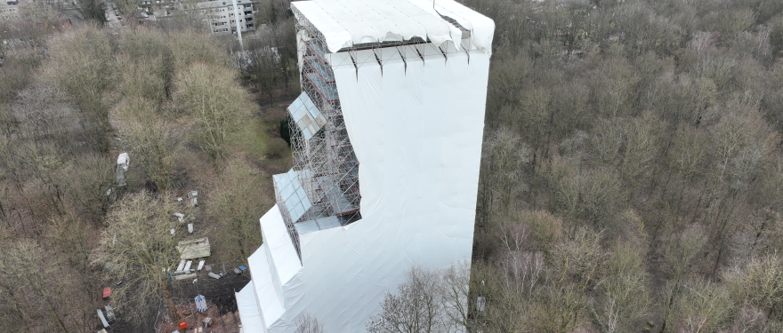 Einen ungewöhnlichen Anblick bietet aktuell das Fördergerüst der Zeche Teutoburgia in Sodingen. Das Industriedenkmal ist fast vollständig mit weißer Folie verhüllt. Dieses aufwendige Vorgehen ist nötig, damit die Sanierung des Fördergerüstes, die im Rahmen des Denkmalschutz-Sonderprogramms der Beauftragten der Bundesregierung für Kultur und Medien gefördert wird, auch dem Umweltschutz gerecht wird.