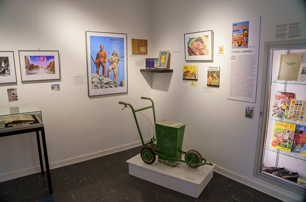 Kurator Ralf Piorr erinnert sich an sein erstes Sammelalbum, ein Winnetou-Film-Album, dessen Bilder in Sammeltüten verkauft wurden. „Die Tüte kostete zehn Pfennig, und ich trug mein ganzes Geld zum Kiosk“, erzählt er. Später entschied er sich, keine Fußballbilder zu sammeln, sondern „Bernhard und Bianca“. Zudem ist er stolz auf sein eigenes Panini-Sammelbild aus dem Oktober 2019, das in der Kreisliga C in Castrop entstanden ist: „Position? Keine Ahnung, ich habe alles gespielt.“ Das Album, in dem sein Bild zu finden ist, trägt den Titel „Pöhler, Typen, Zauberer! Eine Liebeserklärung an den Revier-Fußball“, umfasst 60 Seiten mit 398 Stickern, veröffentlicht 2021 von Panini/Juststickit.
