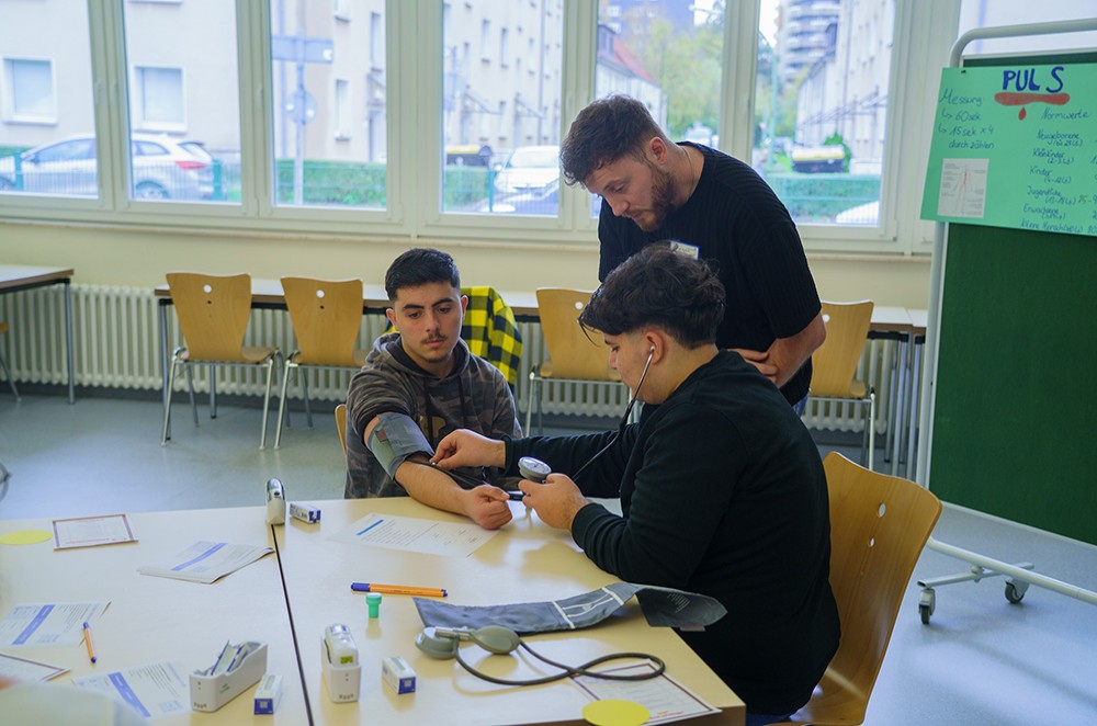 Die Veranstaltung bot verschiedene Stationen, die von Denise Goitowski, Lehrerin an der Pflegefachschule, vorbereitet und von Praxisanleitungen sowie Lehrkräften betreut wurden. Die Schüler*innen konnten Fragen stellen und selbst aktiv werden. Es gab vielfältige Mitmachangebote, darunter Reanimationsübungen, das Messen von Vitalzeichen und ein spannendes Quiz über den menschlichen Körper.