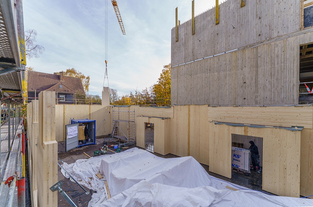 Erst Anfang Juli dieses Jahres fand im Beisein von Hernes Oberbürgermeister Dr. Frank Dudda die feierliche Grundsteinlegung für den Erweiterungsbau der Quinoa-Schule am Drögenkamp in Herne-Baukau statt. Jetzt wächst das neue Gebäude sichtbar in die Höhe – geprägt von einer Konstruktion aus vorgefertigten Holzteilen. Diese Holz-Hybridbauweise sorgt für zügigen Baufortschritt und zeigt den nachhaltigen Anspruch des Projekts.