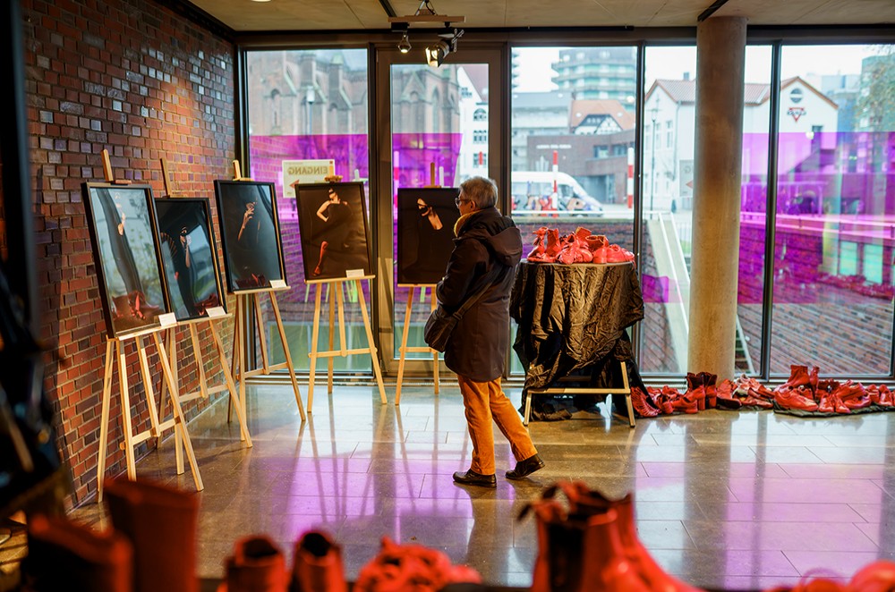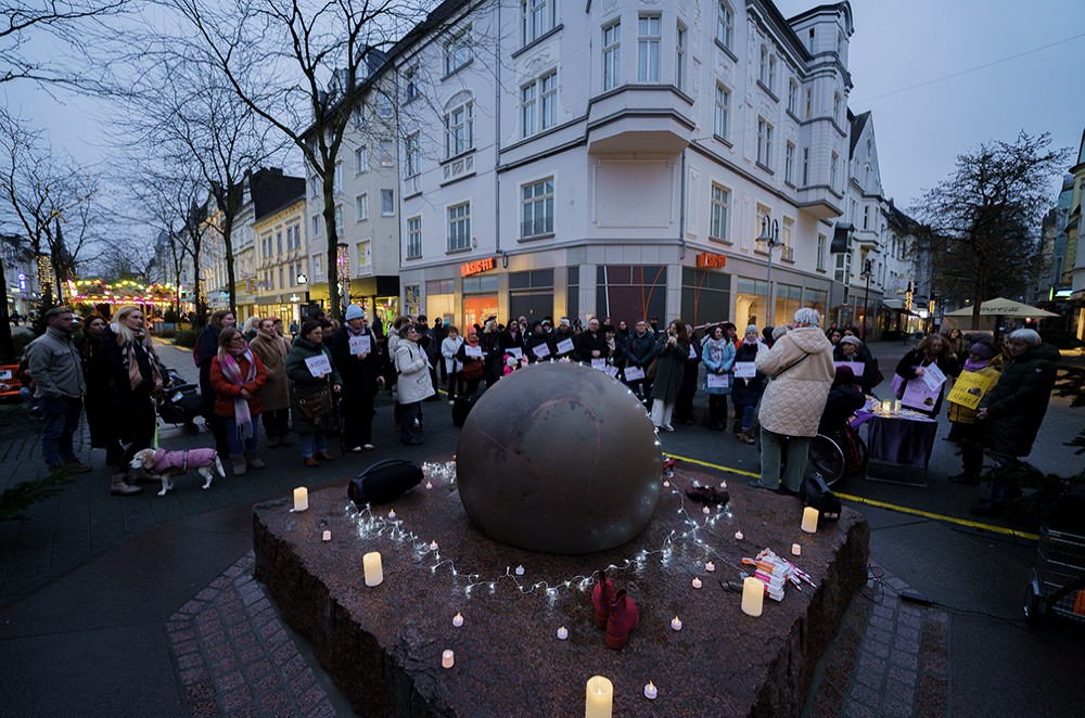 Mehrere ergreifende Aktionen haben zum „Internationalen Tag gegen Gewalt an Frauen“ am Dienstag, 25. November 2025, stattgefunden. 360 Paar rote Schuhe sollten an Frauen erinnern, die Opfer eines Femizids geworden sind. Mit einer Lichterkette am Kugelbrunnen riefen anschließend engagierte Herner*innen zusammen mit Bürgermeisterin Gabriele Przybyl und der Gleichstellungsbeauftragten der Stadt Herne, Cordelia Neige, dazu auf, das Schweigen zu brechen.