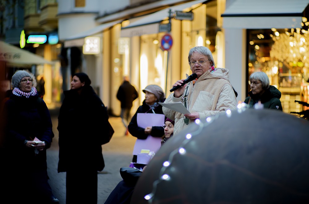 „Gewalt gegen Frauen passiert oft im Verborgenen, häufig in den eigenen vier Wänden hinter verschlossenen Türen, doch wir dürfen nicht wegsehen“, mahnte Cordelia Neige bei ihrer Ansprache am Kugelbrunnen auf der Bahnhofstraße. Denn die Taten passierten mitten unter uns. Laut Polizeistatistik seinen 2024 in 300 Fällen Herner Frauen Opfer häuslicher Gewalt gewesen. „Über das Thema Gewalt gegen Frauen muss gesprochen werden. Es darf kein Tabuthema sein“, so Cordelia Neige weiter.
