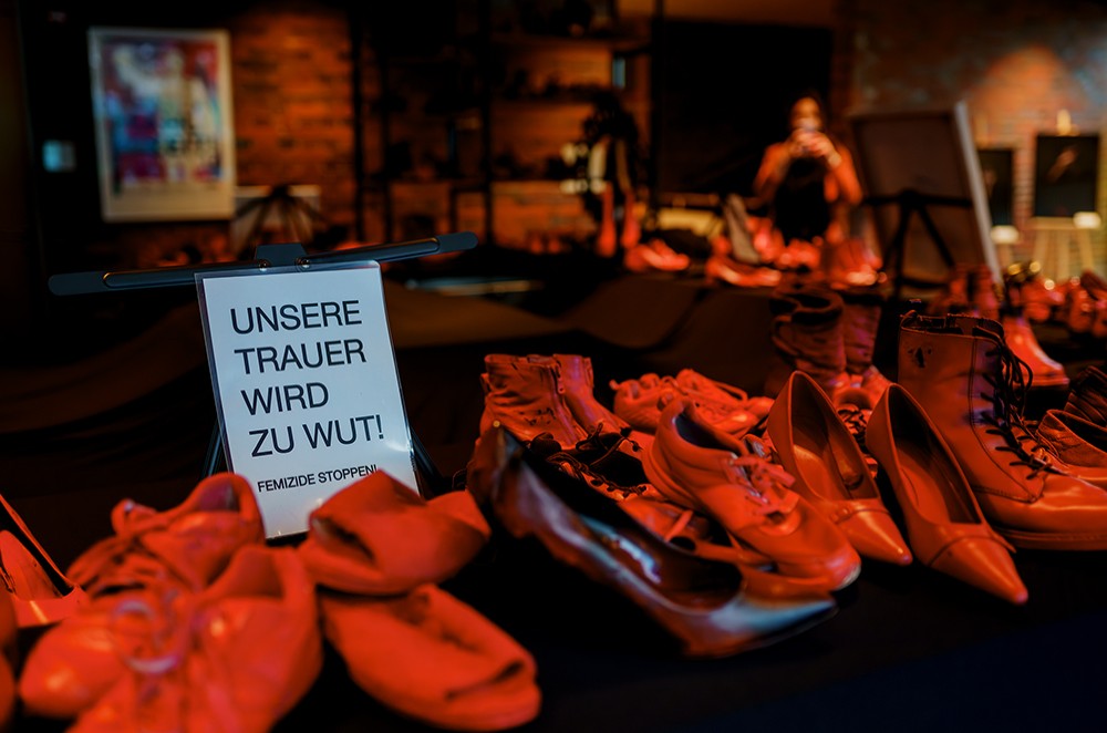 Angelehnt ist die Aktion an das Kunstprojekt „Zapatos Rojos“ von Elina Chauvet. Die Künstlerin platzierte 2009 zum ersten Mal rote Schuhe auf einem öffentlichen Platz in Ciudad Juárez im mexikanischen Bundesstaat Chihuahua, um auf die Opfer von Femiziden aufmerksam zu machen. Ihre Schwester war durch Schläge ihres Mannes ums Leben gekommen.