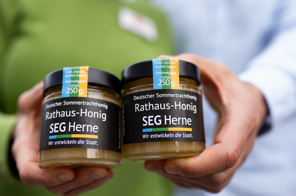 Die Honigspende der SEG für den Weltladen Esperanza erfolgt seit mittlerweile über vier Jahren. Der Rathaushonig stammte von zwei Bienenvölkern, sogenannten Wirtschaftsvölkern, und einem Ableger auf dem Dach des Technischen Rathauses in Herne-Wanne. Insgesamt lieferten die Bienenvölker in diesem Jahr in zwei Ernten mehr als 120 Kilogramm Honig. 72 Kilogramm stammen aus der Früh- und 48 Kilogramm aus der Sommertracht.