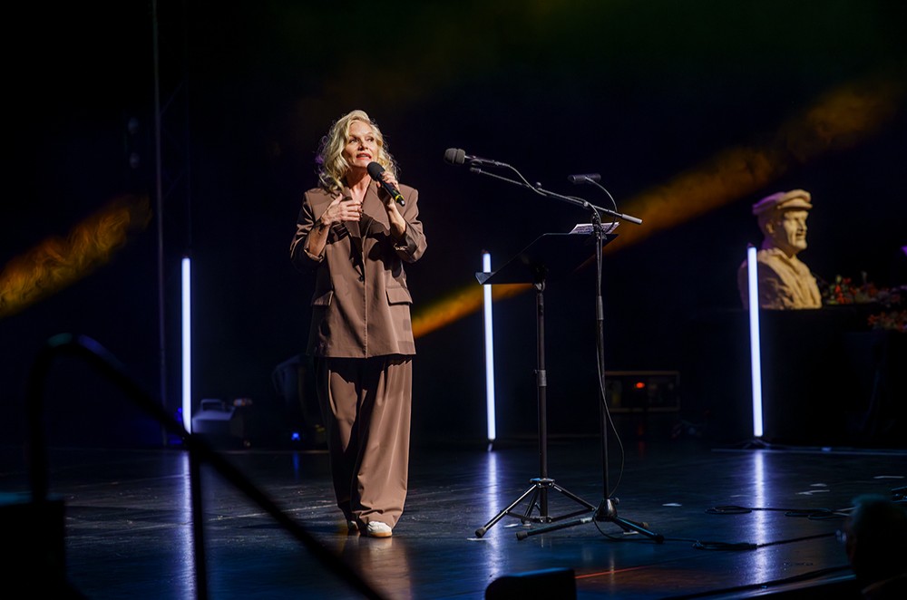 „Tegtmeiers Erben“ ehrte die Schauspielerin Iris Berben mit dem Ehrenpreis für ihr Lebenswerk. Außerdem standen am Samstagabend, 29. November 2025, fünf Finalist*innen im Wettbewerb um die Tegtmeier-Publikums- und Jurypreise auf der Bühne des Kulturzentrums. Star-Komiker Torsten Sträter musste krankheitsbedingt absagen, er hat eine Corona-Infektion. Sträter sollte mit dem Tegtmeier-Ehrenpreis ausgezeichnet werden. Auch Finalistin Vera Deckers blieb krank zu Hause. Moderator Helmut Sanftenschneider führte gewohnt souverän durch den Abend.
