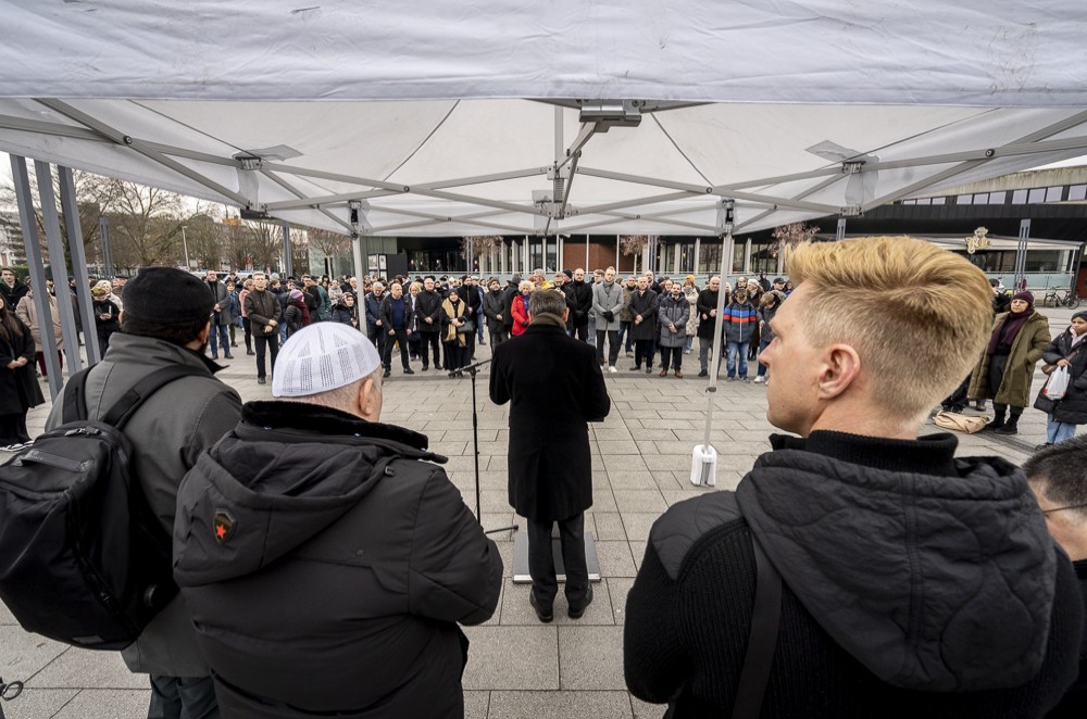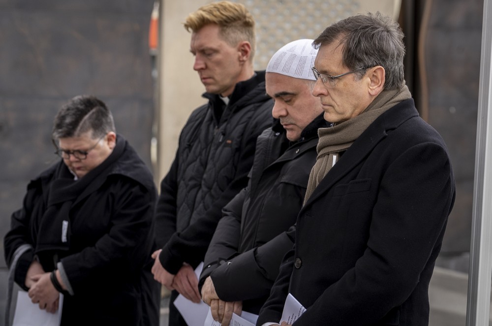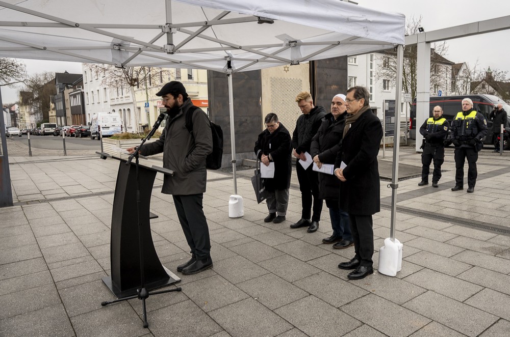 Zum Abschluss der Gedenkveranstaltung sprachen am Shoah-Mahnmal Rabbi Andrés Bruckner, Mitglied der jüdischen Gemeinde Bochum-Herne-Hattingen, Pfarrer Nils Petrat, Katholische Pfarrei St. Dionysius, Imam Ibrahim Nazik, Islamische Gemeinde Herne e.V., und Superintendentin Claudia Reifenberger, Evangelischer Kirchenkreis Herne, Gebete. Die Veranstaltung endete mit einer Schweigeminute.