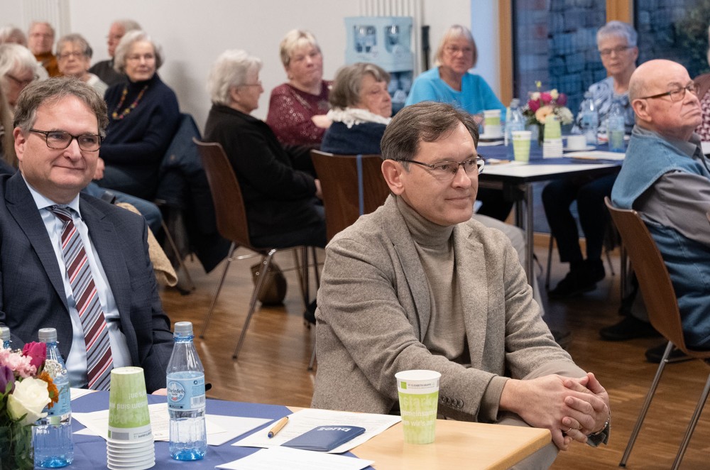 Dr. Peter W. Nyhuis, ärztlicher Direktor des St. Marien Hospitals, sprach als Hausherr ein Grußwort und stellte darin, neben der Würdigung der Selbsthilfearbeit, insbesondere auch wichtige Aspekte der psychiatrischen Selbsthilfe vor. Nach der Vorstellung des neuen Selbsthilfebeirates durch Malina Schäfer-König, Leiterin des buez, ergriff Andreas Nowak, alter und neuer Vorsitzender des Selbsthilfebeirates, das Wort und würdigte das langjährige ehrenamtliche Wirken der beiden ausgeschiedenen Mitglieder Rudi Jäger und Wolfgang Redenz. Er dankte Ihnen – auch im Namen des buez – für ihre unermüdliche und selbsthilfestärkende Arbeit.