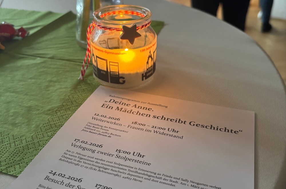 Mit einer feierlichen Veranstaltung wurde in Herne am Mittwoch, 11. Februar 2026, die Ausstellung „Deine Anne. Ein Mädchen schreibt Geschichte“, die vom Anne Frank Zentrum Berlin und dem Anne Frank Haus Amsterdam entwickelt wurde, im Haranni-Gymnasium eröffnet. Zahlreiche Gäste aus Schulen, Politik und Verwaltung nahmen daran teil und unterstrichen damit die große gesellschaftliche Bedeutung der Ausstellung für Erinnerungskultur und historisch-politische Bildung in der Stadt.