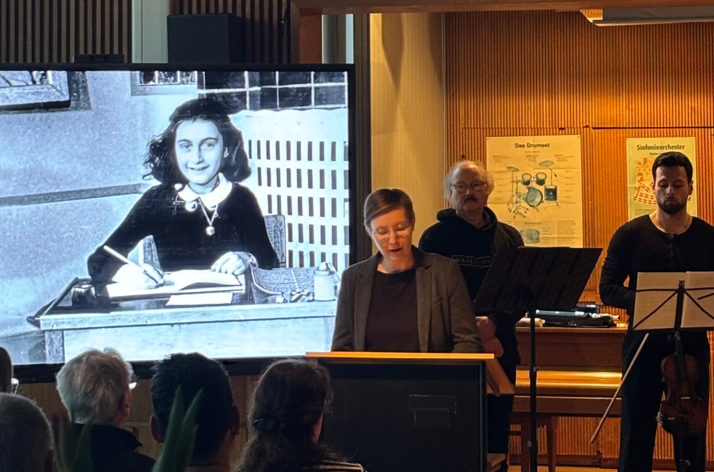 Einen besonders bewegenden Beitrag leistete die Holocaust-Überlebende Hanneke Schmitz, deren Mutter, Gerda Günzburger, 1933 am heutigen Haranni-Gymnasium ihr Abitur machte. Hanneke Schmitz schilderte eindrücklich die Geschichte ihrer Eltern, deren Leben durch Verfolgung, Entrechtung und die drohende Deportation geprägt war. Ihr persönlicher Bericht verdeutlichte die Schicksale der Menschen hinter den historischen Ereignissen und berührte die Anwesenden tief.