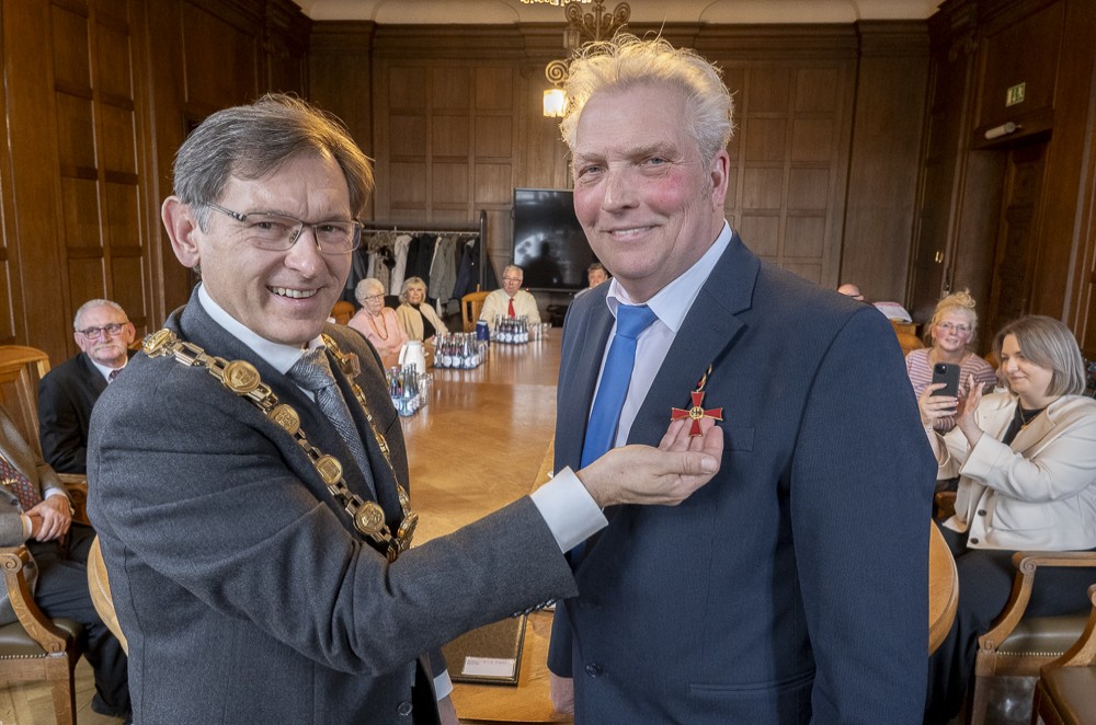 „Ich bin mir sicher, dass Sie Ihr Engagement auch weiterhin mit ganzem Herzen ausüben werden. Ganz so, wie es für Sie seit so vielen Jahren selbstverständlich ist“, schloss Dr. Frank Dudda bei der Überreichung des Bundesverdienstkreuzes.