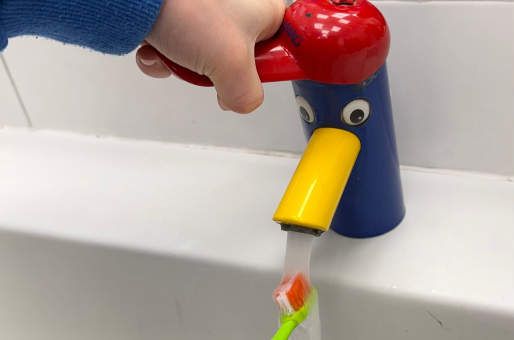 Eine wichtige Maßnahme ist die tägliche Zahnputzroutine. Kinder lernen gemeinsam in der Gruppe, Verantwortung für ihre eigene Mundgesundheit zu übernehmen. Diese regelmäßige Praxis stärkt das Bewusstsein für Mundhygiene und fördert Selbstständigkeit sowie Gesundheitskompetenz.