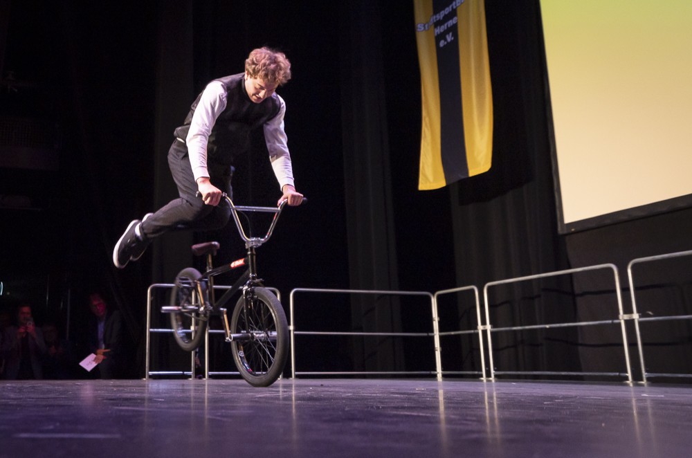 Bereits im Vorfeld hatte Dr. Frank Dudda in einem kleinen feierlichen Rahmen die herausragenden Leistungen der jungen Sportler*innen gewürdigt, die bei der Hauptveranstaltung noch einmal auf die große Bühne kommen durften. Dazu gehörten Mats Leonard Lührig für den zweiten Platz bei der Deutschen Meisterschaft, BMX Freestyle Park, U12, Enie Berling, Luisa Rirschel und Lia Brall für den ersten Platz bei den Weltmeisterschaften im Tanzen, Kids Large Group Showstopper, Philipp Bödecker für den ersten Platz bei den Deutschen Junioren-Meisterschaften im Dart, Luca Thomczik für den ersten Platz bei den Junioren-Weltmeisterschaften im Dart, Mannschaft und den dritten Platz bei den Junioren-Weltmeisterschaften im Dart, Doppel, Sophie Zimmermann für den zweiten Platz bei den Deutschen Meisterschaften im Performance Cheer und Hip-Hop Tanz, Kids, Olivia Janke für den zweiten Platz bei den Deutschen Meisterschaften im Performance Cheer und Hip-Hop Tanz, Junioren, Shaleen Bredthauer für den ersten Platz bei den Deutschen Meisterschaften im Performance Cheer und Hip-Hop Tanz, Senioren, Team, Alira Mustafovic für den ersten Platz beim World Dance Cup, Hip-Hop, Team und Enissa Mustafovic für den ersten Platz beim World Dance Cup, Trio und den zweiten Platz beim World Dance Cup, Solo und Emma Grube für den ersten Platz bei den Norddeutschen Meisterschaften im karnevalistischen Tanzsport und den vierten Platz bei den Deutschen Meisterschaften im karnevalistischen Tanzsport.