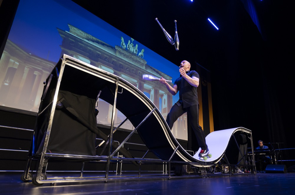 Für die musikalische Untermalung während der gesamten Veranstaltung sorgte die Band "Fiesta Poets". Sprichwörtlich rund ging es anschließend bei der beeindruckenden Show-Einlage von Tim Höfel, der mit seinem BMX die Bühne eroberte. TJ-Wheels zeigte in seiner Rollschuh-Show ein etwas anderes Gesicht klassischer Jonglage.
