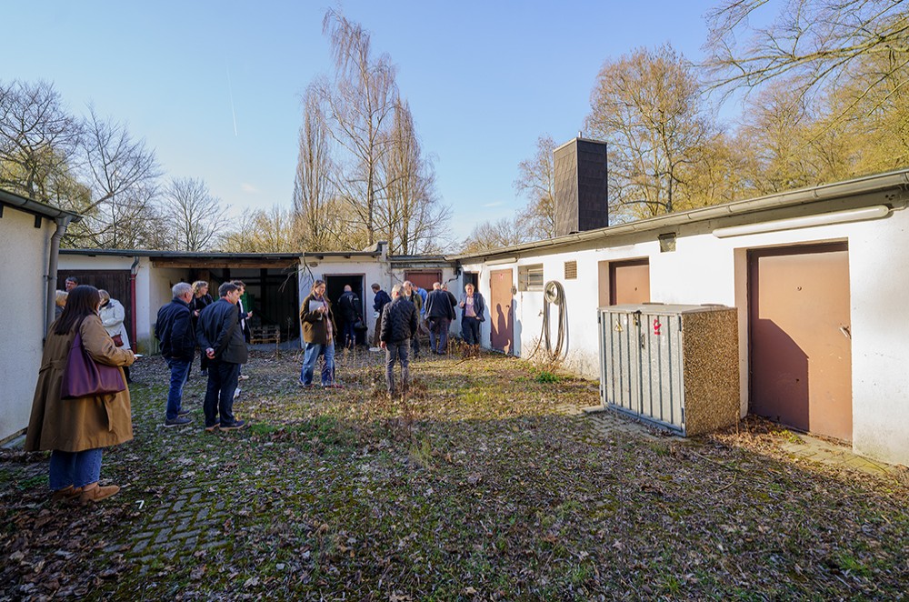 Direkt vor Ort am ehemaligen Unterkunftsgebäude, das in Sichtweite zum Tierpark gelegen ist, konnten sich die Anwesenden vom desolaten Zustand des Gebäudes überzeugen. „Das Gebäude musste 2024 spontan gesperrt werden, da es einsturzgefährdet und auch stark von Schimmel befallen ist“, erläuterte Fachbereichsleiter Stadtgrün David Hucklenbroich. Übergangsweise konnten die Mitarbeitenden beim Betriebsgebäude des Südfriedhofs an der Wiescherstraße unterkommen. Insgesamt vier Mitarbeitende und zusätzlich zwei am Wochenende betreuen den Tierpark an sieben Tagen in der Woche.