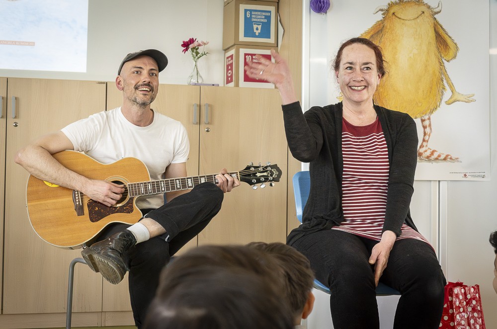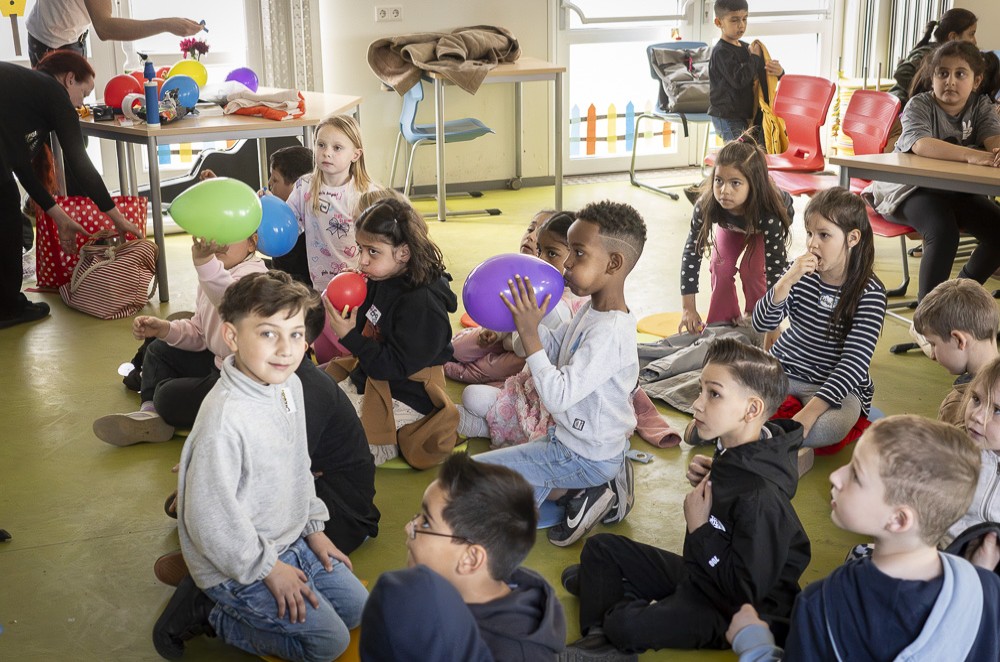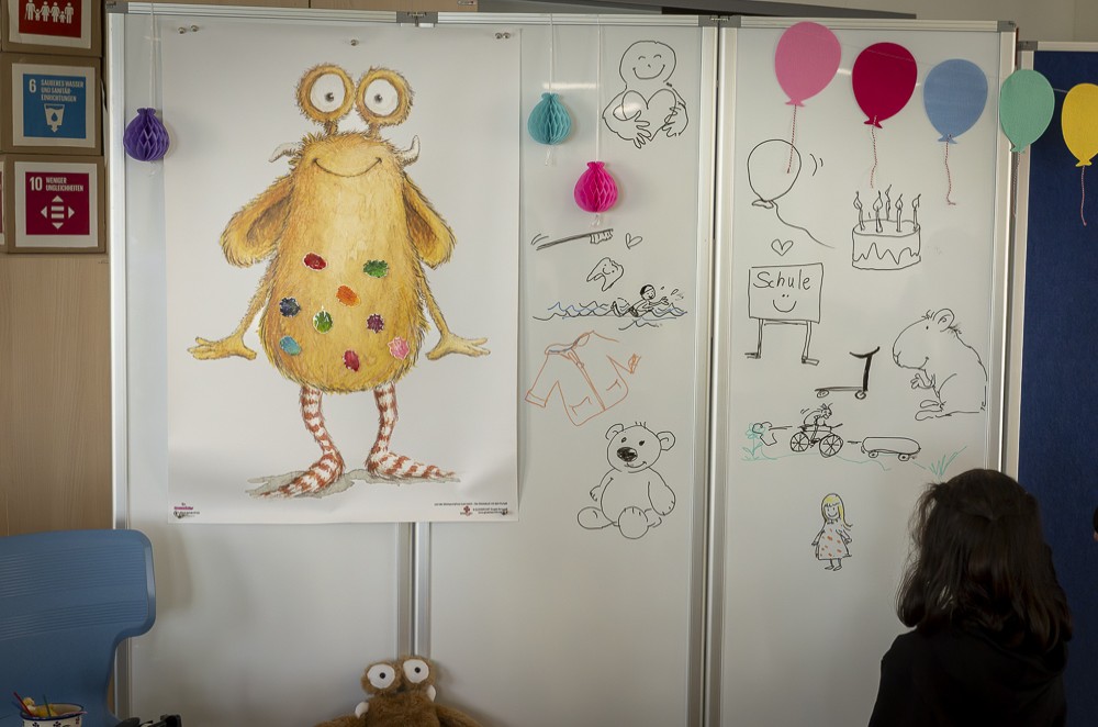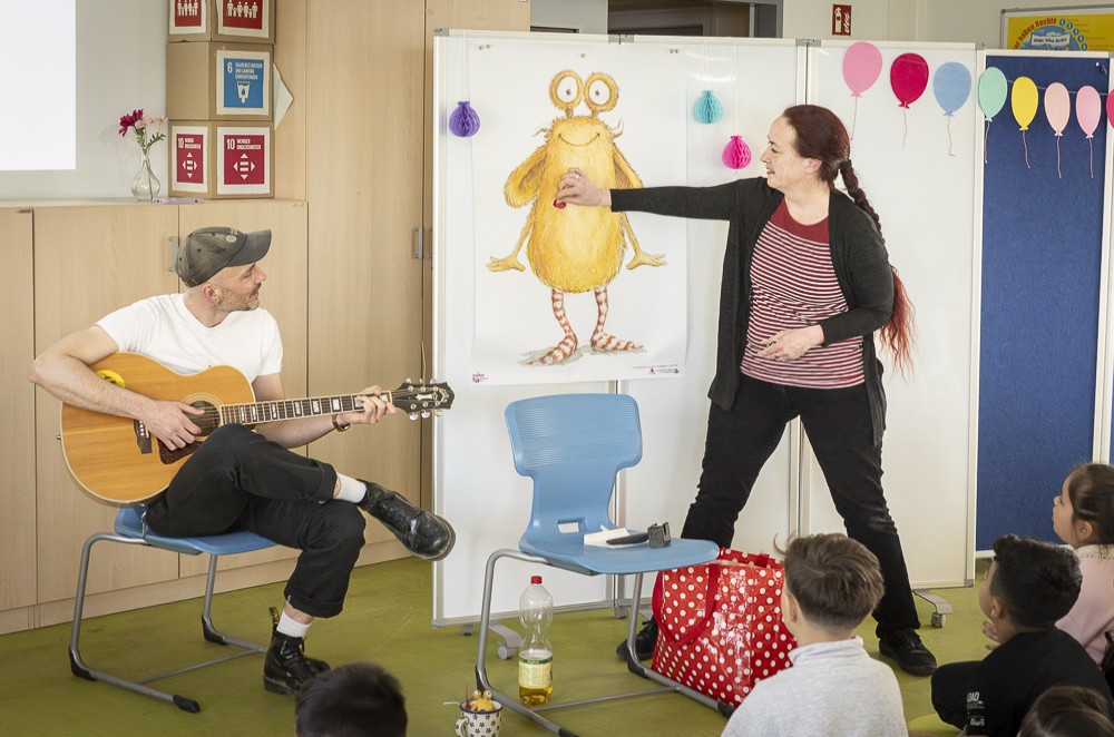Zwischen 9 und 21 Uhr drehte sich letztlich alles um das Thema Resilienz und mit welchen Angeboten sie im Quartier gefördert wird. So gab es ein gesundes Frühstück in der Grundschule Freiherr-vom-Stein, Lachyoga im AWO-Begegnungszentrum „Im Sportpark“, Meditation und einen Erfahrungsraum der Stille in der Kirche St. Joseph. Für die Kinder der Grundschule Freiherr-vom -Stein stellte eine Lesung zum Glückstraining mit dem Buch „Loni lacht“ den Höhepunkt dar: Illustratorin Angela Kommoß ließ die Kinder über ihre Figur Pumpf Loni erfahren, wie man über den Tag verteilt auch kleine Freuden sammeln, sich wieder in Erinnerung rufen und so einen positiven Blick auf das Leben üben kann.