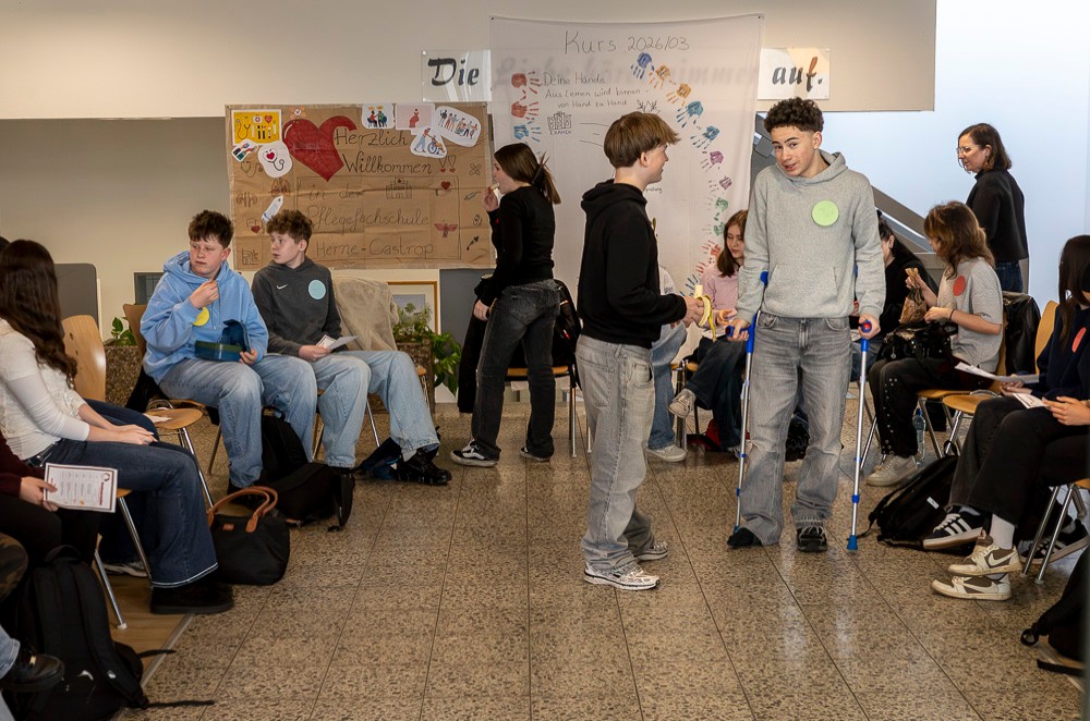 Die Zentrale Pflegefachschule der Evangelischen Krankenhausgemeinschaft Herne|Castrop-Rauxel hat am Donnerstag, 19. März 2026, die Türen für 23 Schüler*innen der Erich-Fried Gesamtschule geöffnet. Die Jugendlichen aus der achten Jahrgangsstufe erhielten interessante Einblicke in die Welt der Pflegeberufe.