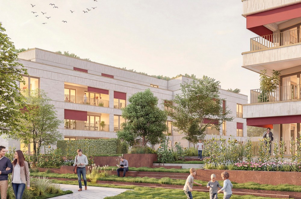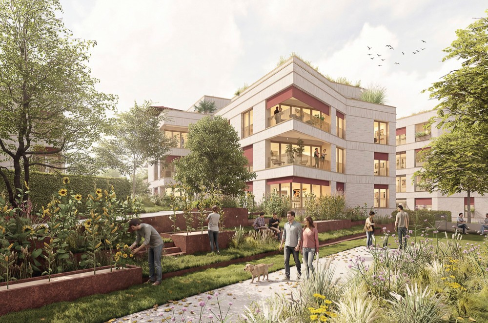 Dies Ideen fanden Anklang bei der Stadt und den beteiligten Juror*innen: "Der Entwurf hat überzeugt, weil er genau das eingelöst, was er verspricht: Eine Integration von Wohnangeboten für unterschiedliche Bedarfe und Geldbeutel und eine gestalterisch ansprechende Einbettung in den Gesamtkontext der Flächenentwicklung", erläutert Stadtbaurat Stefan Thabe das Votum für den Projektentwickler und dessen architektonischen Entwurf.
