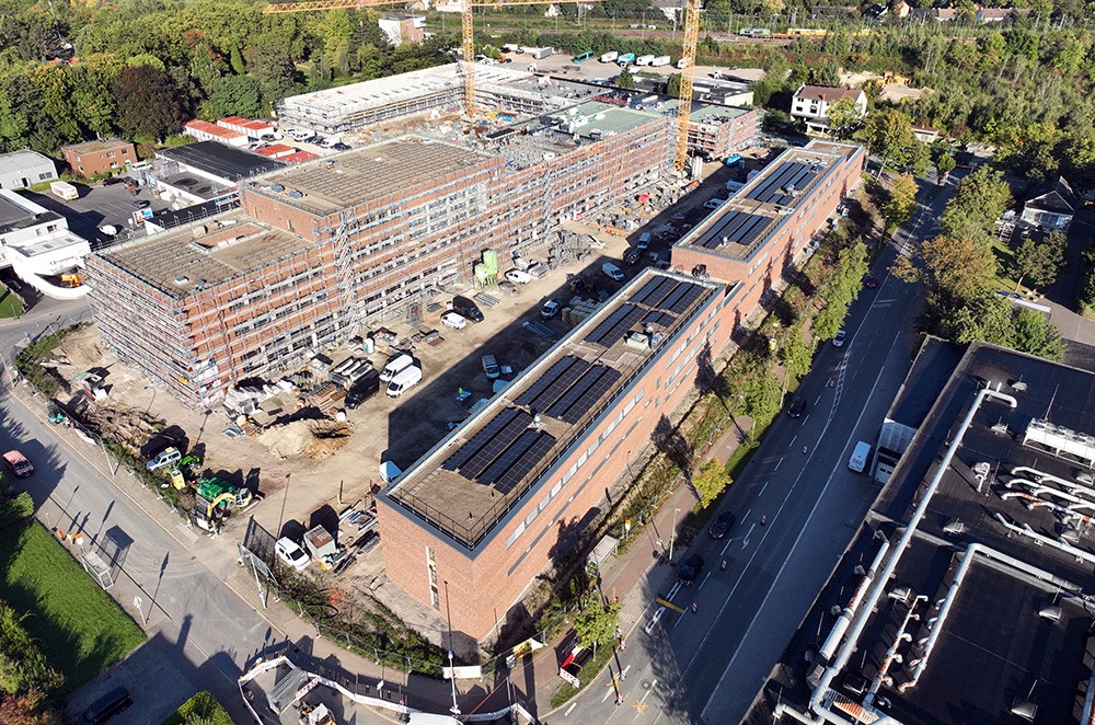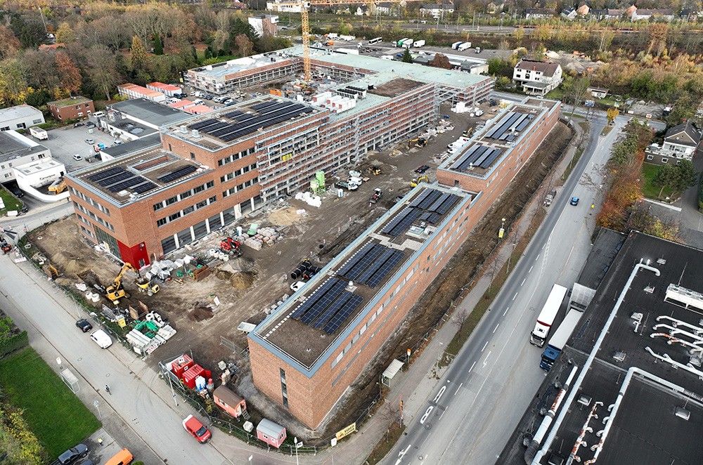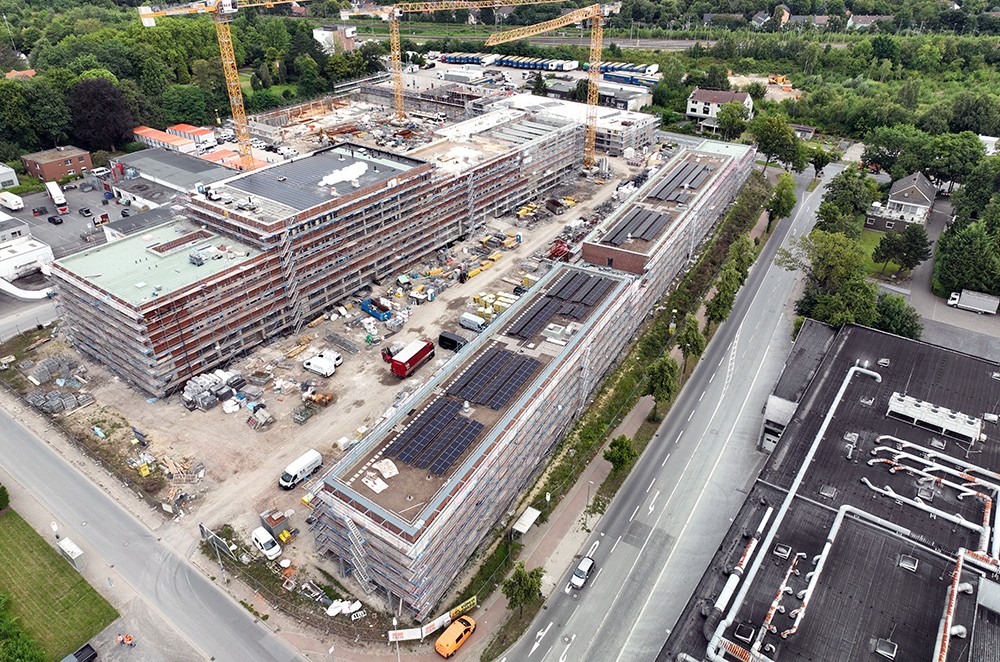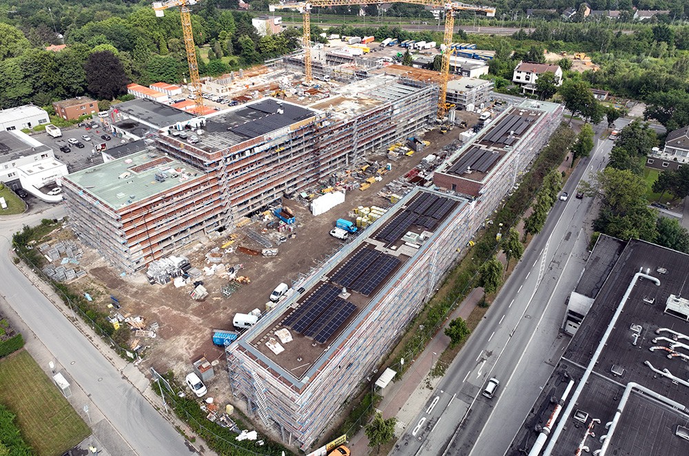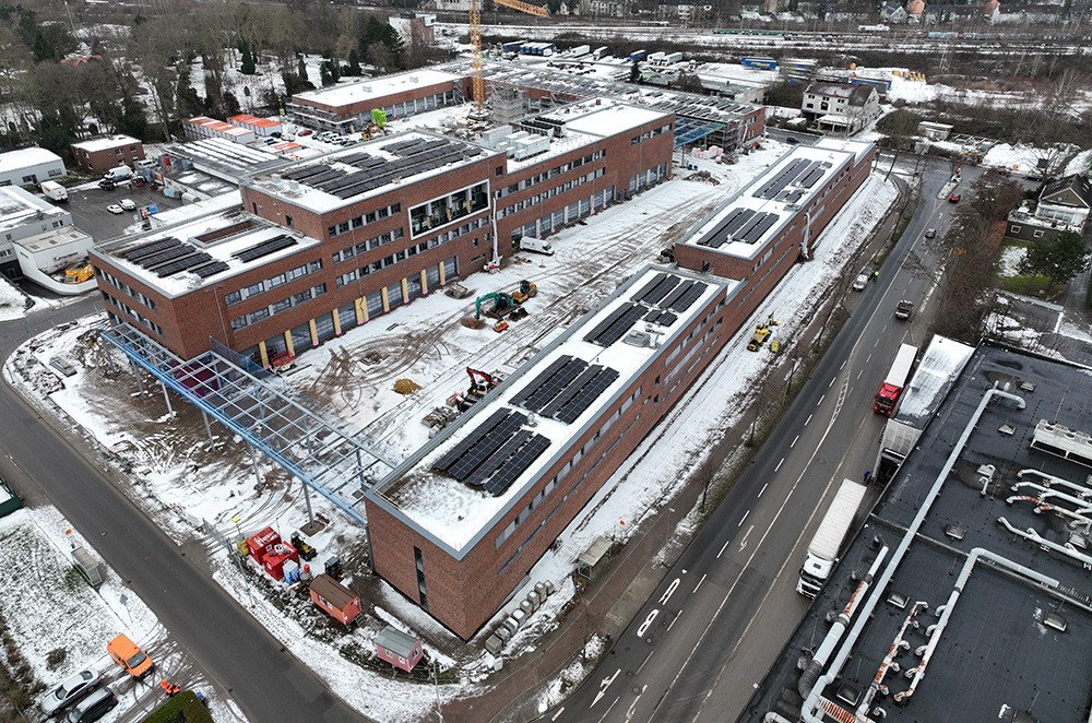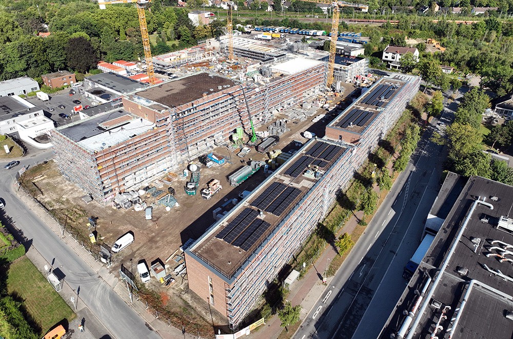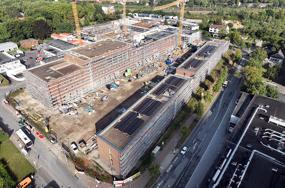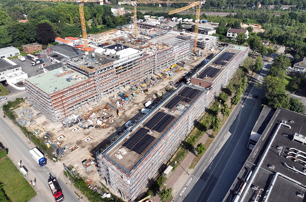 - Fläche Gründach: circa 9.200 Quadratmeter (ohne Flächen für Technik, Terrassen, et cetera), davon circa 5.700 Quadratmeter Photovoltaik