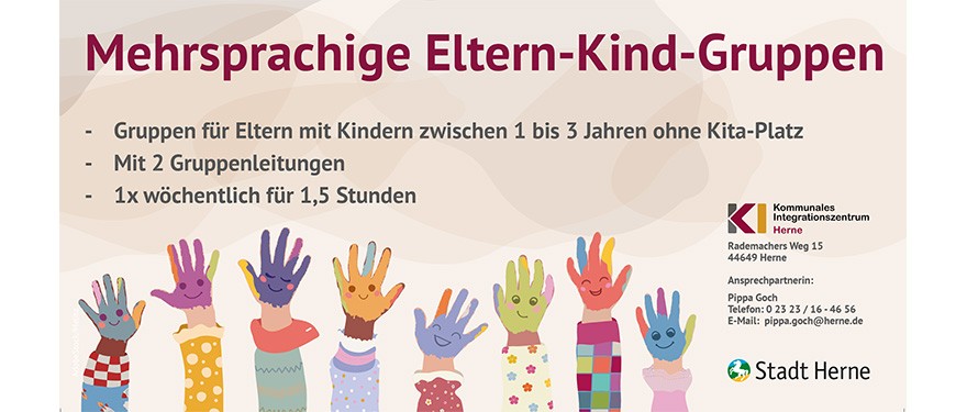Die Eltern-Kind-Gruppen sind ein Angebot insbesondere für Eltern mit Kindern im Alter von einem bis drei Jahren, die noch keinen KiTa-Platz haben. Ziele sind die Elternbildung sowie die Unterstützung der kindlichen sowie der sprachlichen Entwicklung der Kinder.