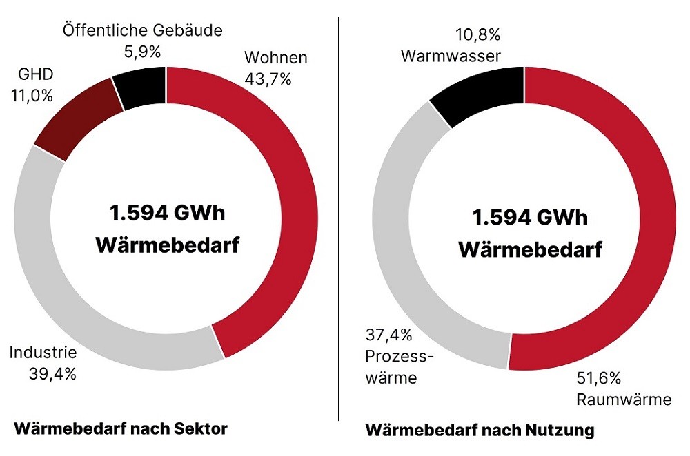 Die Nutzungsformen Raumwärme und Warmwasser haben einen Anteil von 63 Prozent am Wärmebedarf der Stadt und werden überwiegend durch die Sektoren Wohnen, Gewerbe/Handel/Dienstleistung und öffentliche Gebäude beeinflusst. Hier liegt ein Fokus der Wärmeplanung für Herne.