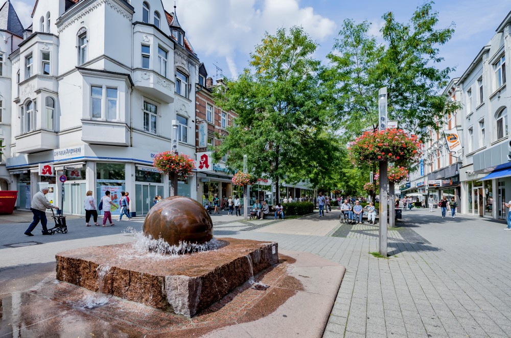 Die Fußgängerzone Bahnhofstraße stellt mit einer Länge von ca. 900 m das Rückgrat des Herner Hauptzentrums dar. Zusammen mit den Nebenlagen ist sie der größte Einkaufsbereich der Stadt. Auf insgesamt über 100.000 qm Verkaufsfläche werden Waren angeboten.