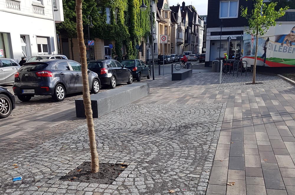 Im Ergebnis wurden die Stellplätze auf dem Neumarkt neu geordnet und geringfügig reduziert. So konnten sowohl im Bereich zur Schaefer- als auch zur Heinrichstraße Aufenthaltsbereiche mit Sitz- und Verweilmöglichkeiten geschaffen werden. Verkehrsführungen wurden angepasst und geändert und neue Bäume gepflanzt. Im Bereich der Schaeferstraße wurden die Gehwege verbreitert, die Bereiche zum Parken neu geordnet und die Querungen barrierefrei ausgebaut. In allen Bereichen konnten große Teile des historischen Kopfsteinpflasters gestalterisch ansprechend -zum Beispiel zur Hervorhebung der Stellplätze oder im Bereich der Baumscheiben- wieder verwendet werden. Die Planung und spätere Realisierung des Bereiches hat einen sehr guten Kompromiss zwischen Erhalt von notwendigem Parkraum und Attraktivierung eines historischen Stadtplatzes gefunden.